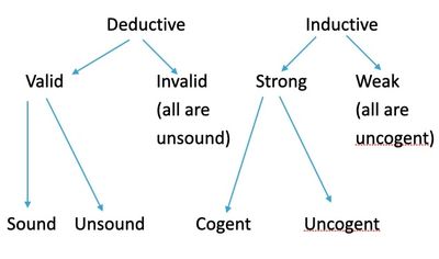 Note the diagram of an inductive argument. Instead of the premises being valid or invalid, the premises are either strong or weak.